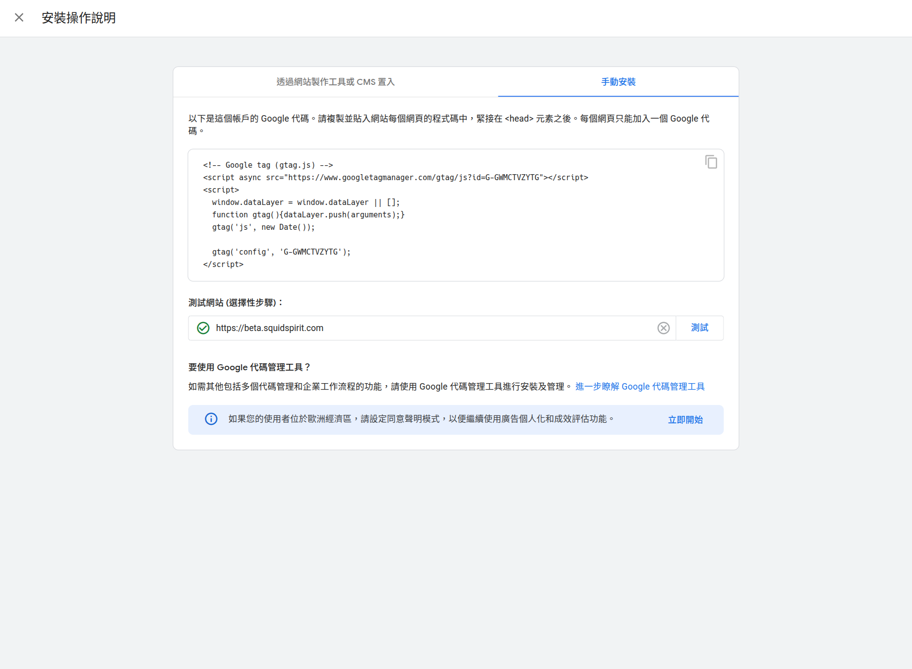 > **The <code>window.gtag</code> function is defined by the Google Analytics script (<code>gtag.js</code>) itself <br>once it loads. Re-defining it in this component can override the official function, <br>leading to incorrect tracking or unexpected behavior. Ensure <code>window.dataLayer</code> is <br>initialized, and then allow the loaded <code>gtag.js</code> script to handle the <code>gtag</code> function.** > > [frontend/src/lib/common/framework/ui/GoogleAnalytics.svelte [21-26]](https://git.squidspirit.com/squid/blog/src/branch/BLOG-112_install_ga/frontend/src/lib/common/framework/ui/GoogleAnalytics.svelte#L21-L26) > > ```diff > window.dataLayer = window.dataLayer || []; > -window.gtag = (command: 'config' | 'set' | 'js' | 'event', ...args: unknown[]) => { > - window.dataLayer.push(command, ...args); > -}; > +// The gtag function is defined by the gtag.js script itself. > +// No need to redefine it here. > window.gtag('js', new Date()); > window.gtag('config', gaMeasurementId); > ``` Defining gtag function is the sample code that Google provides: ```html <!-- Google tag (gtag.js) --> <script async src="https://www.googletagmanager.com/gtag/js?id=TAG_ID"></script> <script> window.dataLayer = window.dataLayer || []; function gtag(){dataLayer.push(arguments);} gtag('js', new Date()); gtag('config', 'TAG_ID'); </script> ``` However, the original implementation import the script with `<script lang="ts">`, so we have to define the type of function arguments. I remove the language restriction so that we don't have to define the function type by ourselves. Addressed in e9b716521d943c9263353883a3db33cb4c48f486.